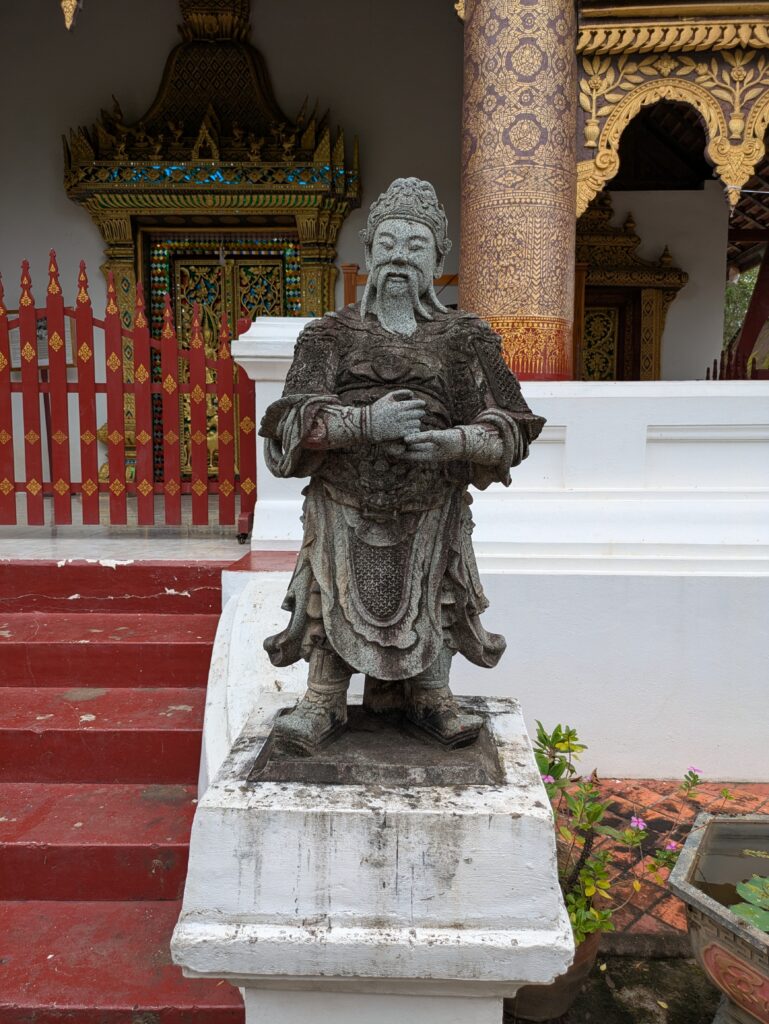 When we finished we left and went to a couple of Wats, but we called our explorations short due to drizzle. Arrived back at our place, to wait out the weather a bit. We finally seemed to have a break, and went back out. We started on the river, seeing it was mostly back to the level we know to be normal. But it started spitting again, so we went straight for lunch at Nang Tao. I had Kao Soi and Jeff had the Crispy Noodles with Chicken. We finished and went back to our place.