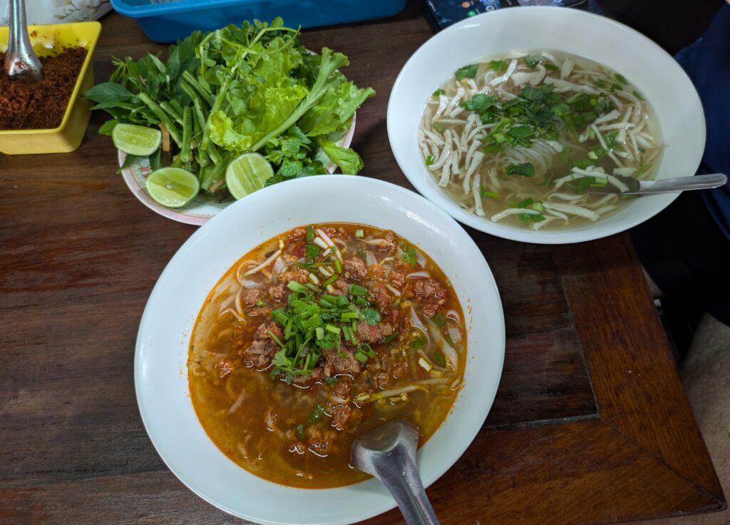 Around 1000 we getting around to go to the Luang Prabang Museum. But they close at 1130 for a two hour lunch, so won’t be going to that today. At 1230, we went for lunch. It was raining – we had to wait about ten minutes until it turned into just a fine mist, then headed out. We went close by to a local, no name, Khao Soi place. We got one Noodle Soup and one Khao Soi. Both were tasty.😋😋 We paid 100,000 LAK total, which is $4.64. Then we walked further to get a lemon tart take away. It cost 55,000 Kip by itself, which is $2.55.