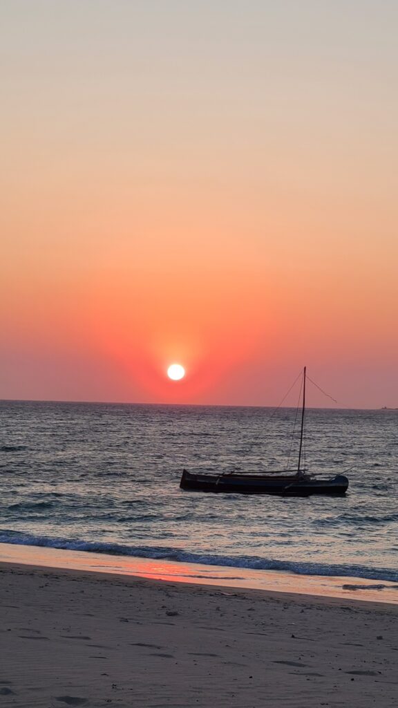 We awoke and up around 07ish. At 730, we took a small leisurely stroll on the beach. (I am feeling better and want to be out.) This beach is white sand and has a bunch of different whole – some big – shells. It is a sheller’s paradise! We went back to our bungalow, readied and to breakfast around 09. Breakfast was fruit salad of pineapple and papaya, bread and a croissant, a very different juice (not naturally sweet at all, I’m reserved on it), and coffee/tea. (It has been my first coffee for three mornings, and oh boy was it strong!) We finished and went back to our bungalow – realized we forgot to get a water. I volunteered since I feel/want to be up more today.