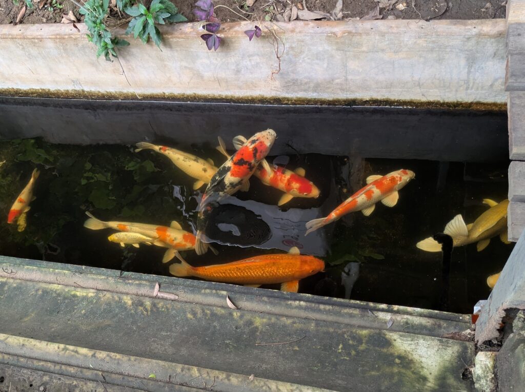 As we drove there were more waterfalls, temples, sites to see; but I kind of was bummed out. I don’t know why maybe it just had to do with not seeing elephants.🙎🏻♀️😑🤷🏻♀️ We arrived in Mae Sariang, around 1430. We were a bit early for our 1500 check-in time, so we stopped for gas and found a rotisserie chicken place. We arrived at the place we had booked, only to find it open and empty. We were still about 10 minutes early so we sat in the little breakfast area, eating our chicken, when a policeman showed up. He told us – through Google Translate – that the owner had been shot!!! What?? OH MY!!!! The owner was in the hospital having surgery, and the place was closed! Of course it would be! I told the policeman we will be praying for him and we gathered up our stuff and left. I didn’t know what else to say… what can you say when something like that happens! We loaded up in our Yaris and searched for another place online. We found a place, booked it, and drove there. We arrived at the Above the Sea Boutique Hotel. We checked in, unloaded our stuff. I was still a bit in shock from our previous venture but thankful to have a place to stay tonight. I hope that man is okay. We finished our meal, watched the huge koi fish the hotel has, and decided to go for a walk along the Yuam River. It was serene and peaceful. After we finished our walk, we went back, watched some YouTube, and went to bed