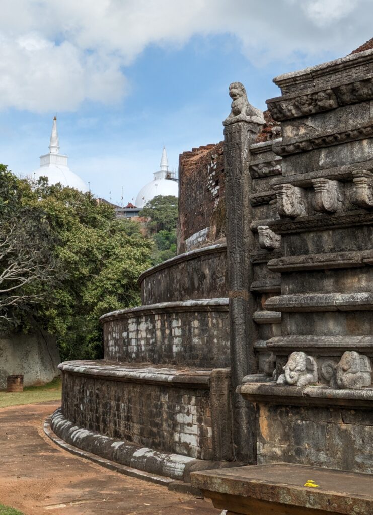 Next and up some stairs to the main buildings area. 1st- the Refectory or Alms Hall (or Mess Hall). Where food was donated and set up in troughs for the monks breakfasts and lunches. 2nd- the next building foundation housed the – Slab Inscriptions of Mahinda. These two big stone slabs were basically administrative rules and regulations for the monks daily lives. 3rd- was the Assembly Hall. This is the basic governing place for the monasteries.
