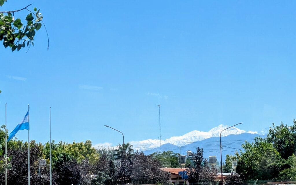 Around 1400 we went out for a walkabout. We decided to charge up our Sube cards. Then we caught the Electrico Mendotran, an electric trolley of sorts. We rode it to the furthest station, Gutierrez. Along the way, it’s still in the Mendoza metro area, but remote – south and a bit east. Overall, the area had a more local vibe – individual houses, shops, etc. and poorer. We got a great, larger view of some snowcapped Andes mountains. Spectacular and more of what I expected. It was hard to get that epic picture that I wanted.