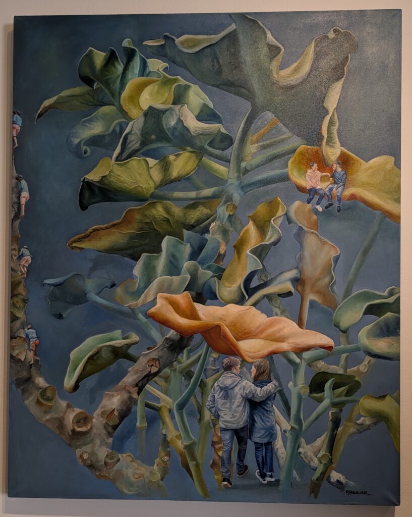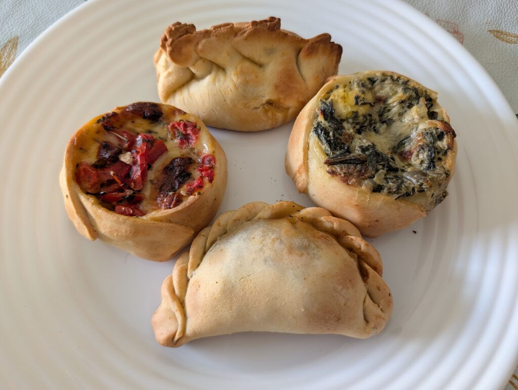 Around noon, we went out. We wanted nice shirts for the cruise. We had seen a couple of local shops and went to them, just a few blocks away. I found one and Jeff found a couple. These three items cost us around 50,000 ARS ($35-36). We then tried to get some Scopolamine patches, but we struck out. As we were heading back to our place, a nearby Contemporary Art Exhibition Hall was open so we went in. The building was a very old colonial type one. Entrance to get in was free. We viewed some very different art pieces here. Some of the works I enjoyed… and others not so much. But this is art, right? When we left, and stopped a few feet away at a local shop and bought two empanadas and two tartlets for lunch. We took them back to our place and heated them. They were good, but the empanadas – at the wine tasting place across the street – were better.