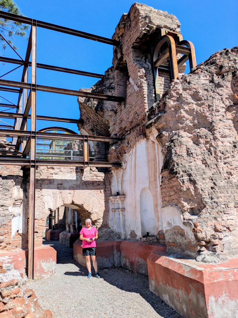 The description placards were only in English, so we had to translate as we went along. What we gathered – place housed an area of excavated foundations of the former Mendoza as the translated title said. There was more information also relating to how water was established into this desert area – for the city to be here and grow. The city was known as the “forest city”(after the big earthquake) because of the irrigation canals enabling trees and gardens. Also the placards explained a little of the local Indian, the Huarpe; the Inca; and the Spanish. Overall it was a good little museum. Of course there were artifacts, and explanations of the foundations. One foundation was described as the ruins being that of a town hall/Municipal Fair(?) building with a multi-arched facade, and another one of a slaughterhouse with tools still embedded in the earth. The Jesuit Ruins of San Francisco were mentioned in the Museum, as well as the 1861 devastating earthquake. We finished and went to the Jesuit ruins that were catty-cornered from the Plaza.