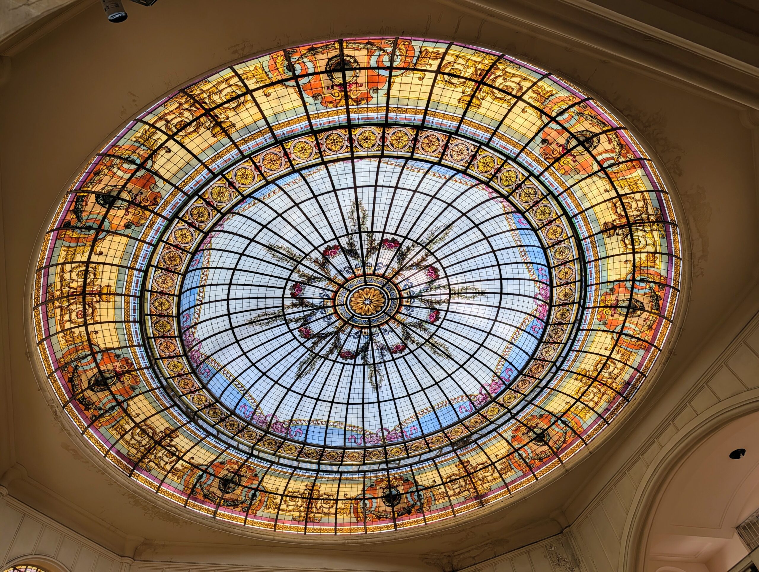 The ruins were free, and this is the only part of pre-1861 Mendoza that is known to exist. Much of the structure was non-existent, but metal beams add some support and give one an idea of what the building looked like. We walked around and explored it some. Then we walked back to our place by way of a cool building we’d seen in the museum and through a covered type of open mall. The covered ceiling was stained glass – that was impressive. Then back at our place we ate a salami cheese sandwich for lunch and prepped our supper. We had bought some beef from a local butcher and carrots, potatoes, and onion from the local fruit/veg place we frequent. We made a red wine beef stew in our oven. It was ready in three hours and it was so gooodd!!