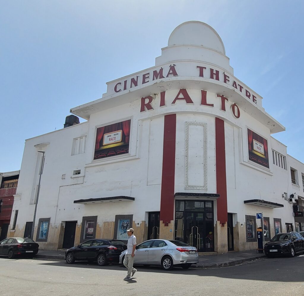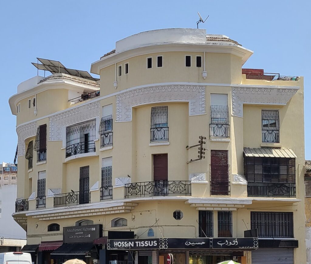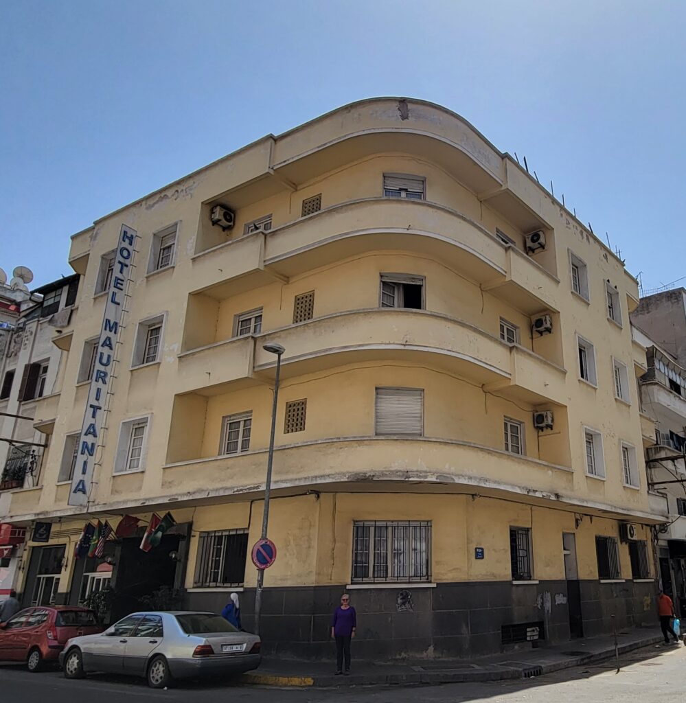 Next we headed over to parts of the city where the buildings are Art Deco style. We found so many, most are not being kept up, but the “bones” are still there. The ones that are being maintained are usually owned by banks!! It was fascinating to imagine them in their heyday. We stopped midway to get lunch, well actually breakfast and lunch. We each had a loaded Shawarma plate. It was so good, and we both had combo meats- beef and chicken! Not just chicken, as was the case in Essaouira. After lunch finished the walking tour, and came back to our hotel- discovering it was an Art Deco design also! Siesta time!
