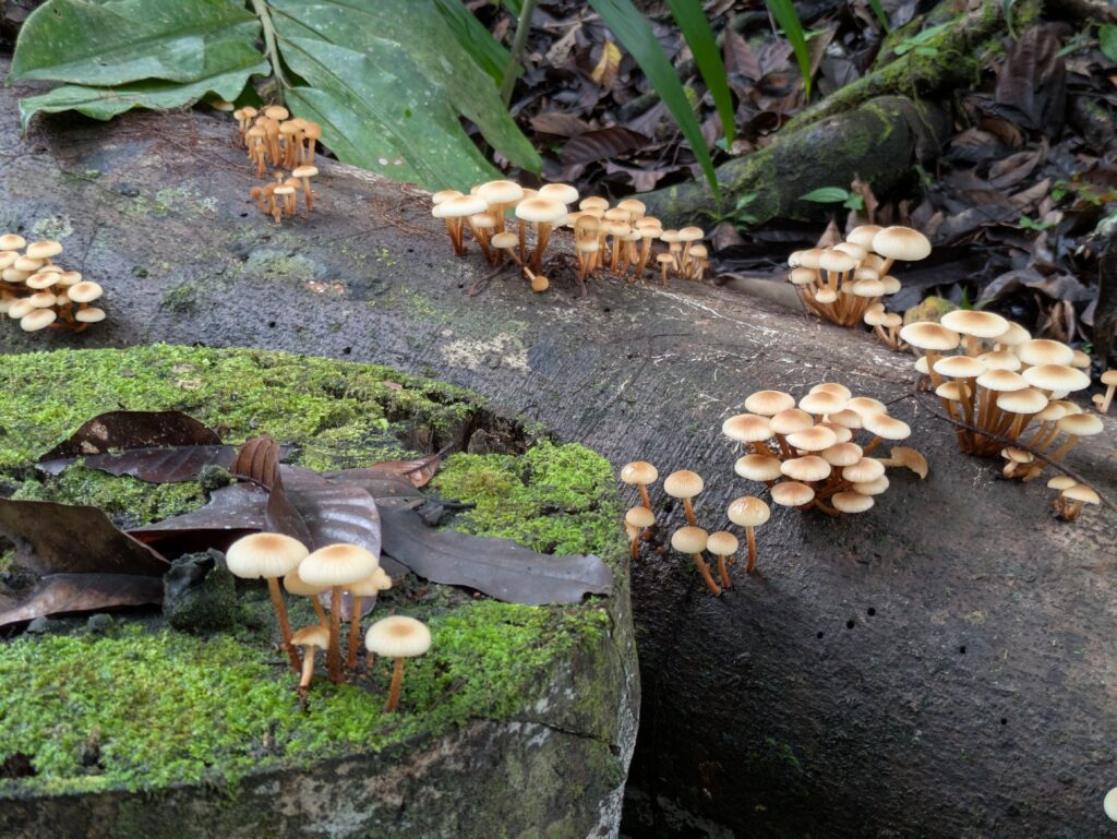 After the walk through we hung around the entry as there was a free guided walk to start in a few minutes. A lady in Muslim coverings walked up. I asked if she was the guide. She replied, “Yes. We will start in ten minutes” I nodded. It seemed we would be the only ones. But within five minutes others showed up. She mentioned no mosquitoes, as someone had asked, but she did say leeches. Yuck!! I tucked my pants into my socks. The guide did as well and one other lady followed suit. We started promptly going on the Silau-Silua Trail. The guide stopped us within a feet. We all told where we were from and she introduced herself, but abbreviated her name to Sue. “Silau name,” she said, “comes from the yellow-orange color of the soil found on this trail.” Sue talked of the kinds of trees as another group joined us, making the group about 15 or so. We continued on for the easy one hour long trek. Sue stopped and talked of her village; and pointed out various plants that her people use as medicine, for weaving baskets, etc, to help them live. Sue also talked of the 2015 earthquake that killed 18 hikers and guides that were on the mountain. It was a 6.0 and the epicenter was under this Mountain!