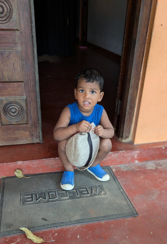 Anyway, we were all packed and loaded by 1100. Jeff paid our host, Dilan (laundry was 2,000 Rupees-$6.54) . As we getting in CB, the little boy of the homestay came and watched us. I waved bye and took a picture of him – so cute. Dilan opened the gate and we waved bye at each other. It was a good place/stay. So on the way…