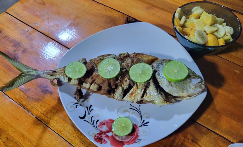 We stopped at Kowri Family Food. It is literally right next to Theepan’s Guest House, where we are staying. We were greeted and then the menu was brought to us on someone’s phone! We had a Fruit salad (bananas, mango, and pineapple with a hint of savory seasoning); some hot, not spicy, French Fries; and a BBQ (grilled) Fish. [He said it was Parrot fish, but the picture he pulled up was of another fish (which we have had before and enjoyed.)] It was another great meal – more home cooked – as we waited for 45 minutes. It was very fresh, hot – made after we ordered. But the shocker it was all served to us relatively about the same time! This hardly ever happens at the very local places.
