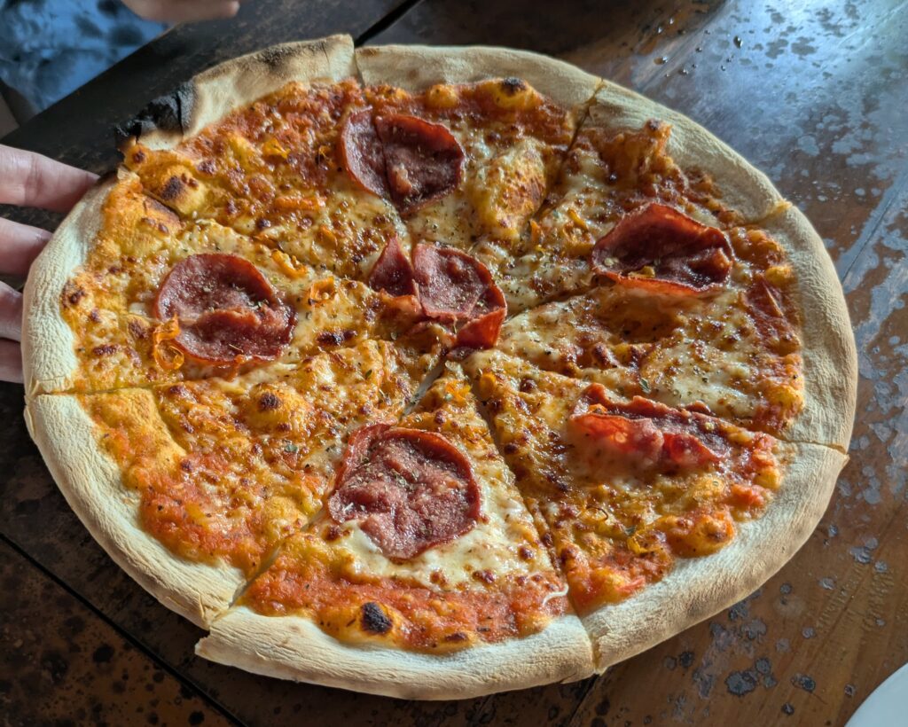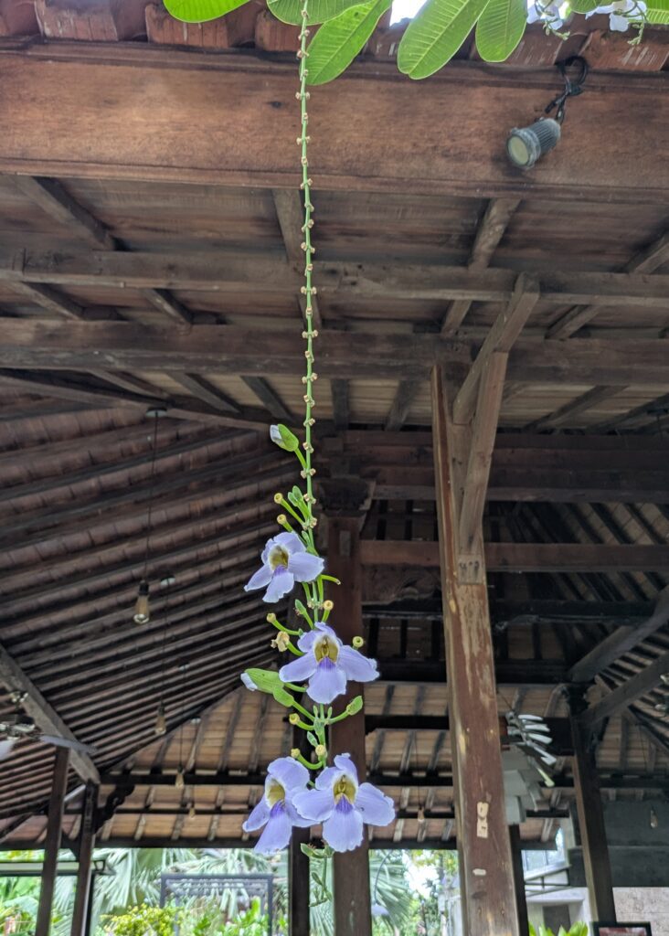 We turned around and went back to our village and our place. I blogged and Jeff read. Then we went to lunch at La Casa Kita, Wood Oven Pizza Bar & Restaurant. We shared a Mixed Salad, and a Pepperoni Chili Pizza. Jeff had a new Balinese beer, Singaraja; I had an “Arak Attack’- which is Arak with ginger, honey, lime, and tonic. It hit our spot. The sitting area was nice and open, but cool with fans. They had a Koi pond and I got to feed their fish! Anyway we paid 240,000 IDR, or $14.61, and left back to our place by way of a convenience store. We keep trying to find good bread, but no such luck! Ubud had several bakeries, but not up here!