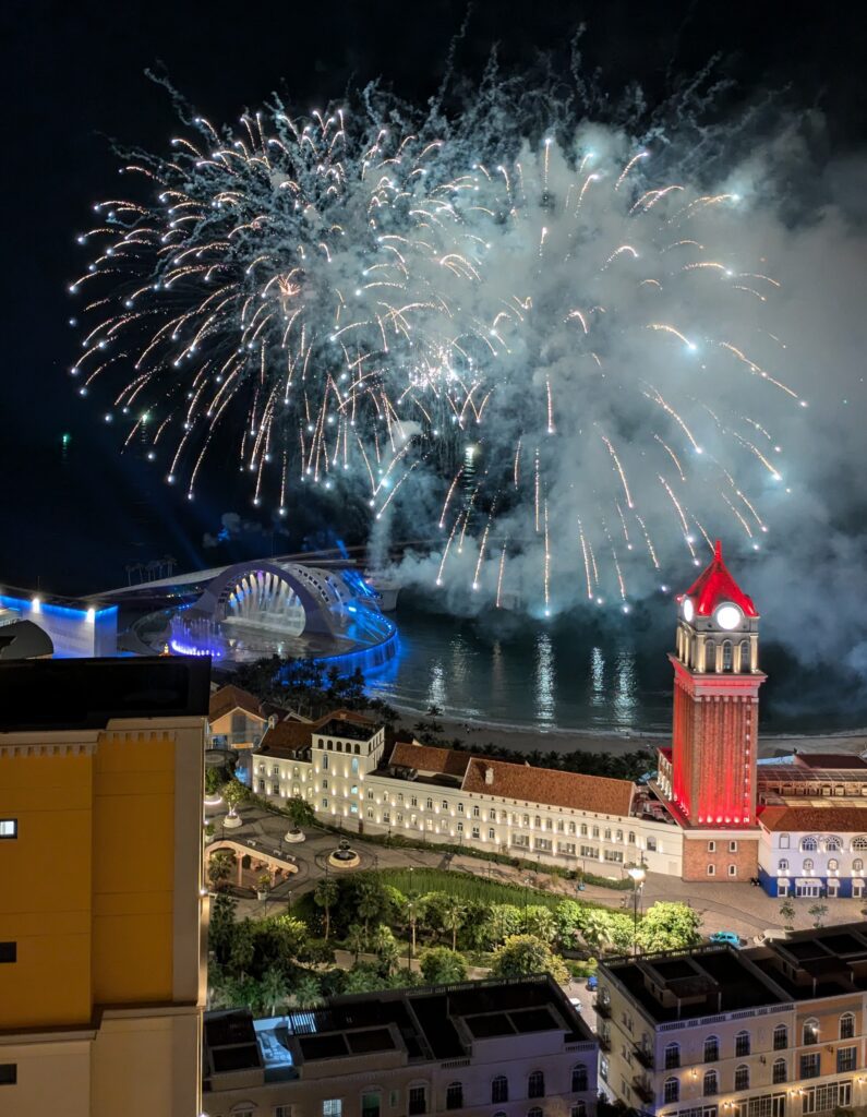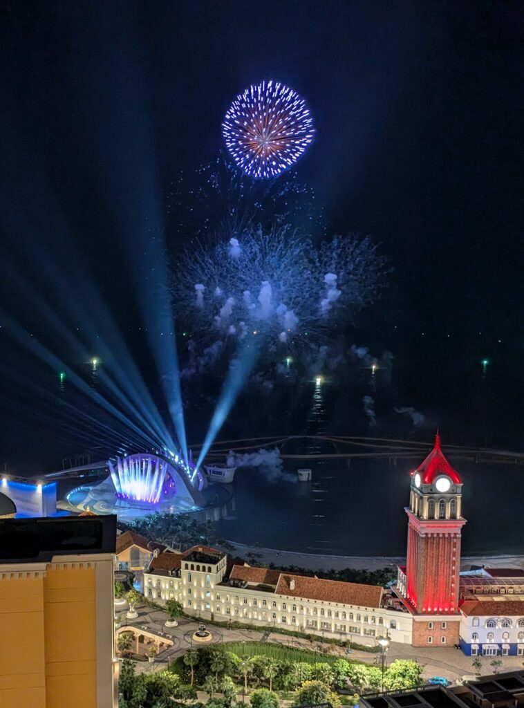 We both just stayed in the condo for the afternoon as well. Jeff went out and got an onion and bread for supper. We made some stir-fry in our condo. Sunset was again swallowed up in many clouds. But then the fireworks were again different and great! We went to bed around 2230. I am back to normal – don’t know what I had.