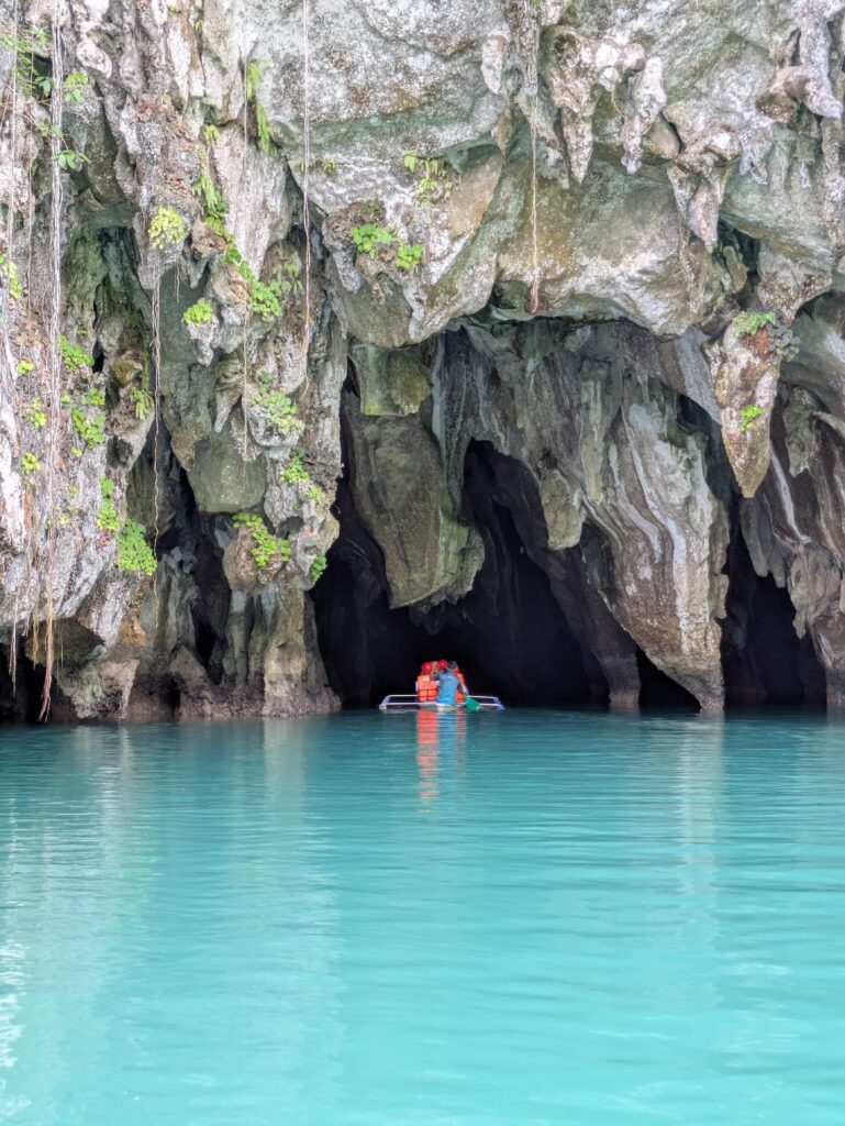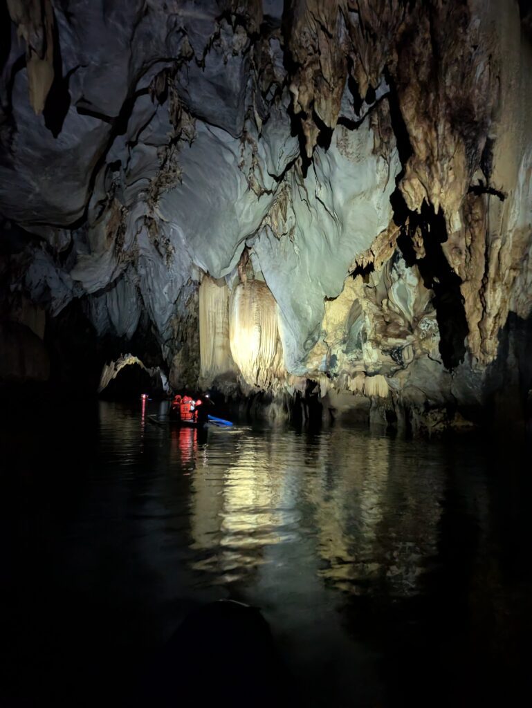 We were assigned to boat #74 and we boarded at 0840 with five other tourists: three were a Spanish couple with their teenage daughter; the other two were guys (Australian). Once the boat started there was no talking, because of the loudness of the engine, you couldn’t hear. There were two Filipinos- one was the driver and the helper. We were only on the ocean for like 15 minutes. Finally we arrived at the National Park. It is a river running underground through a cave system.