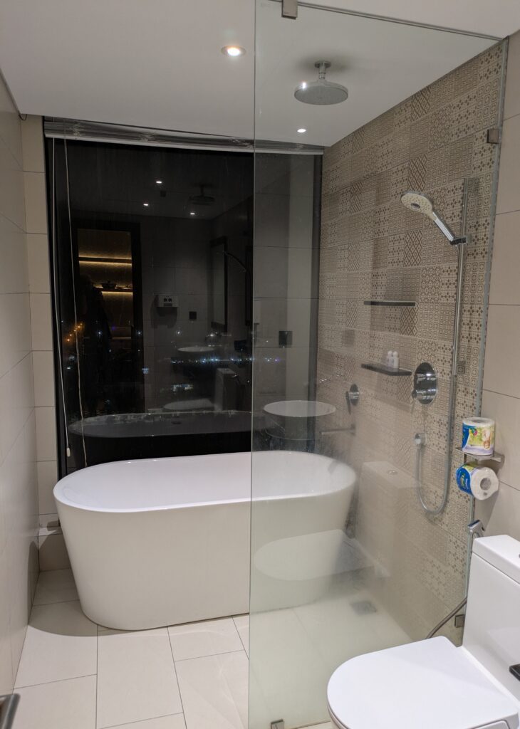 We exited the station to the awaiting, hungry group of taxi drivers. It is a smaller group as this is a smaller town, but still. Jeff bartered with one and he accepted. We don’t have far to go, and we arrived by 1755. We are at Apec Mandala. It is a 27 story jobber. Inside the lobby, the security guard helps us by talking with our meet person. As we wait, we watch a set up for a photo shoot that is going to be happening. Our lady hostess took our passports to be copied. Then she escorted us to the 13th floor, which is unusual as most places don’t have a 13th floor. It is usually 12, 12A, and 14. We are let in a studio place. It looks like the pictures: a kitchenette (kettle without mugs – we won’t be getting any from her), a wardrobe, a table, a bed, and a love seat. There is a great balcony with a sea view and a sitting/lounging nook with the sea view. Lovely! Then the bathroom… it is next level. We have a tub with a sea view window!! How cool is that! Our hostess wanted payment and Jeff had to go with her to the ATM to get the full amount. I unpacked a bit. When Jeff returned we went out in search of dinner, and we got caught in a gusty wind and rain burst. Needless to say, we just went to a convenience store and got instant noodles and water. Back at our place, we were making our soups and discovered one was a savory porridge. Both were good. Finished unpacking, and I took a bubble bath! Bed by 2130.