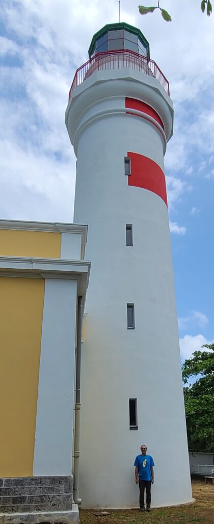 We walked to car rental place. We had to wait a bit but successfully procured our car – a white, very small Peugeot! FREEDOM! We went out. Jeff had a drive in mind, of course he did! This is my husband the planner!!! I love this about him – he always surprises me! We followed the main road east that circumnavigates the island, outside of Sainte-Clotilde to Saint Andre. We stopped at Sainte Suzanne and visited the Phare de Bel Air. It is a lighthouse built on a basalt cliff protecting boats from two big rocks off shore. The “beach” was rocks. The wave action made the craziest sound, but reminded me of some coastal areas in Washington state. Back in the car, we found a park area and had lunch. Two baguette sandwiches: one a spiced, minced chicken in a thin pasta with mayo; other a tuna and corn with mayo. Both different, but good. (The tuna and corn reminded both Jeff and I of a crepe we had we believe in Belgium.) Now we cut inland and worked our way through some winding ten percent grades up to Hell-bourg – 4412 feet!! We stopped in this quaint town and checked out T-shirts – they were made by the same company as the ones we just bought in Madagascar – but, Oh My! so much more expensive, we walked away! We did buy an ice cream bar each. From here we decided to go follow the road up further. We passed through a fire on the side of the road. (We can’t escape smoke! We had it all over in Madagascar.) Now we basically went to the end of the road, at the small town of Grand Islet. The elevation was basically 1200 m (approximately 4000 feet). The scenery was breathtaking! It was so steep and lush green – it reminded us of Norway Fjords or practically, anywhere in Hawaii, especially Kauai. There were clouds captured by these mountains and there was one in the middle that was just far enough away it was the only one dappled with sunlight. It was surreal and totally picturesque!