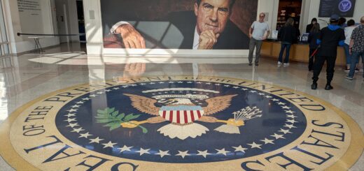 Anyway, we headed out. The day is gorgeous so we want to do the hike down into the crater and around it a bit. We did stop – needed some lunch stuff and car needed gas. We drove up little roads to the Vulcan road. Along the Vulcan road is the Commersion Center and the highest elevation point. It is 2310 meters or 7580 feet up, pretty impressive sweeping views. We drove again to the the end of the road; unloaded; and hiked to the start of the trail down into the crater. The winding steps down into the crater have been built for ease, but it is seemingly unrelentless down (which means unrelentlessly going up to get out). It’s supposed to take 15 minutes, but we took our time and stopped for people coming up/leaving. It took us 25 minutes. When we started, clouds rolled in and helped keep it cool, a nice benefit. At the expansive crater bottom we followed the painted white dotted line along the various lava flows, which created that huge moonscape area. Plants are trying to make a come back, but not succeeding as yet. A little lava cone developed in a 1753 eruption and is situated in the middle of the crater moonscape. It seems really new, but just shows how unforgiving lava ground can be.