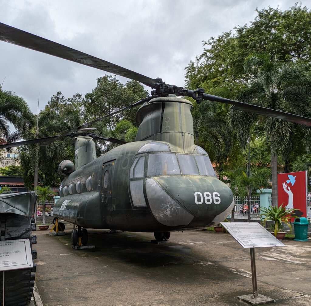 It is only 650 meters (710 yards) and we arrived at our destination the War Remnants Museum. Online it is described as – Memorial museum exhibiting photographs, weapons & other objects from the Vietnam & Indochina wars. We paid the 40,000 Dong ($1.63) each and through the turnstiles into a yard full of old US military items.