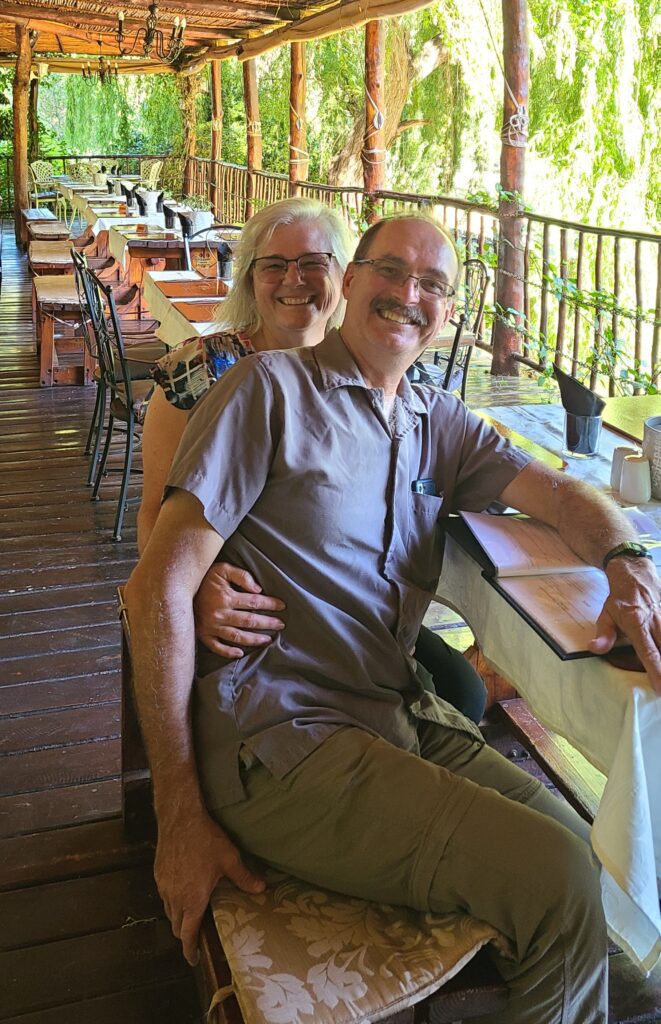 The restaurant is built around the Old Mill and the history of the place is written up. We were seated at our reserved table and another couple were sat next to us, they had not made reservations. They were taking pictures and I asked if they would take our picture and I would take theirs in turn. This opened conversation that lasted all through our meals. They are German. She had to translate some for him, as he was not getting all the conversation. They had been at an Ostrich Safari, the Cango Caves, and just stopped here to eat, well, Ostrich, as they were heading back to Oudtshoorn tonight. They will be in South Africa total of 18 days and will do Kruger National Park. They were fascinated with what we are doing. I did not get their names (unfortunately), but they seemed very nice, and I wish them Good Journeys!