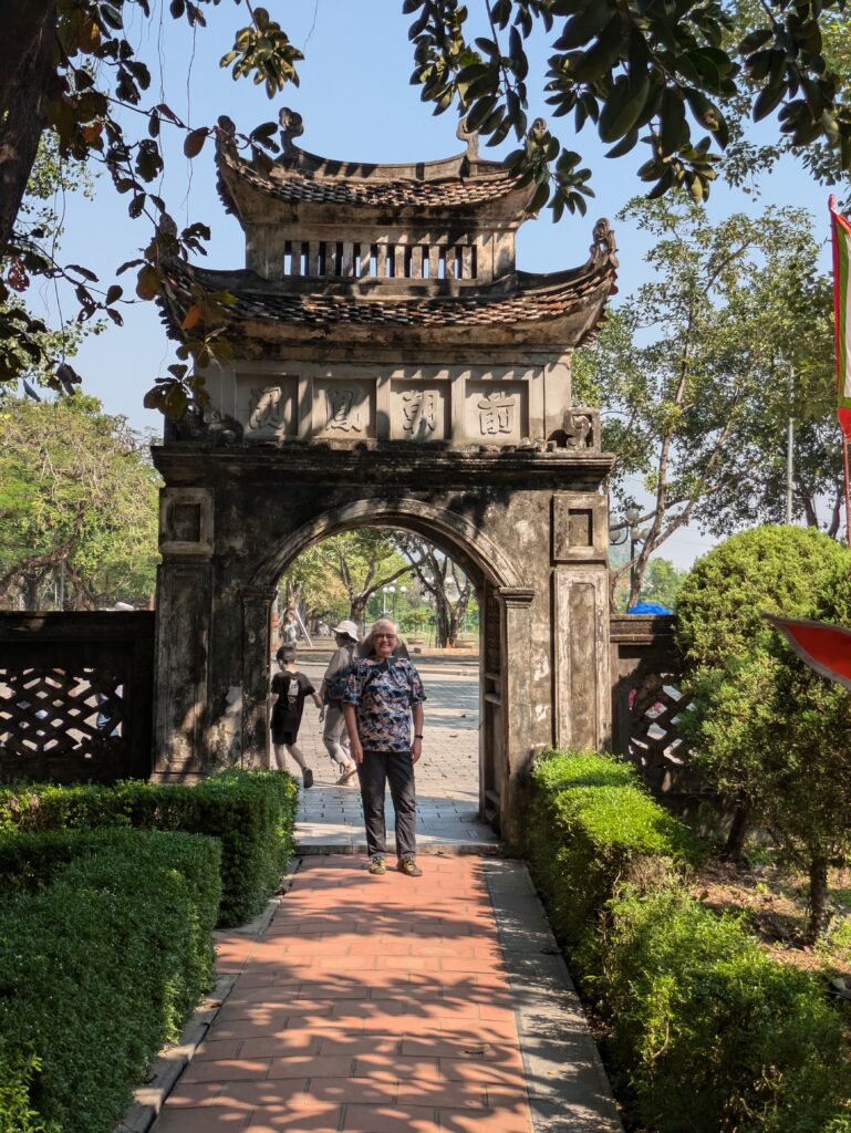 From here, we walked a lesser path along aside road through a grand three arched, semi-neglected gate spanning the road. We pass small homes and by water ladened fields with grave sites(?). Since it was not marked well, had to retrace steps a bit, but we found it. It was a landmark, called Lang Vua Le Dai Hanh, but there’s no real “there-there”. Not many tourists come here, and we see why. But it was different to walk through the water field area. We went back to the main area.