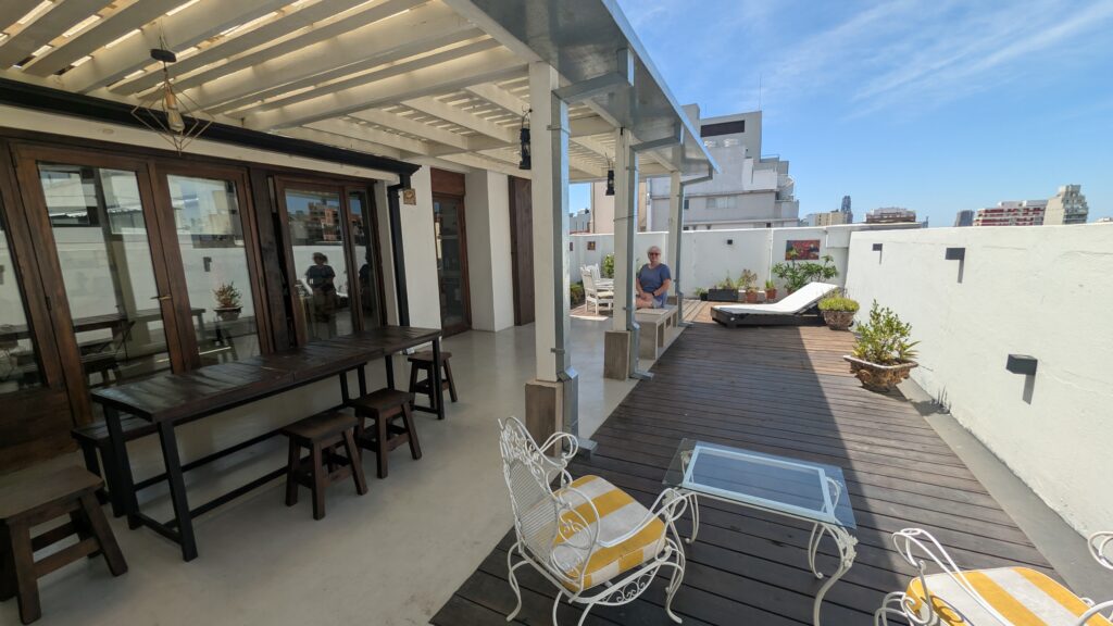 By 1430, we had our bags and by 1455, we were in a Cabify taxi heading to our Airbnb. We arrived by 1530. Someone met us and took us up to the penthouse flat we had booked. We had to take one elevator up to the sixth floor and then a super small elevator – just me and the bags would fit – to go up the last floor. Anyway, he gave us an apartment tour. It’s a two level jobber. The bedroom and bathroom are downstairs. An office is over this with the foyer/hallway leading to a big open room of the kitchen, dining, and front room. Then, the reason we got this place, the huge balcony- it’s longer than the big room and just as wide. The majority of the balcony is covered. It is simply fantastic and a nice breeze makes it cool. The place has a semi-eclectic vibe, and is very open air. We like it! The man left us one set of keys. So we started unpacking, and getting settled in.