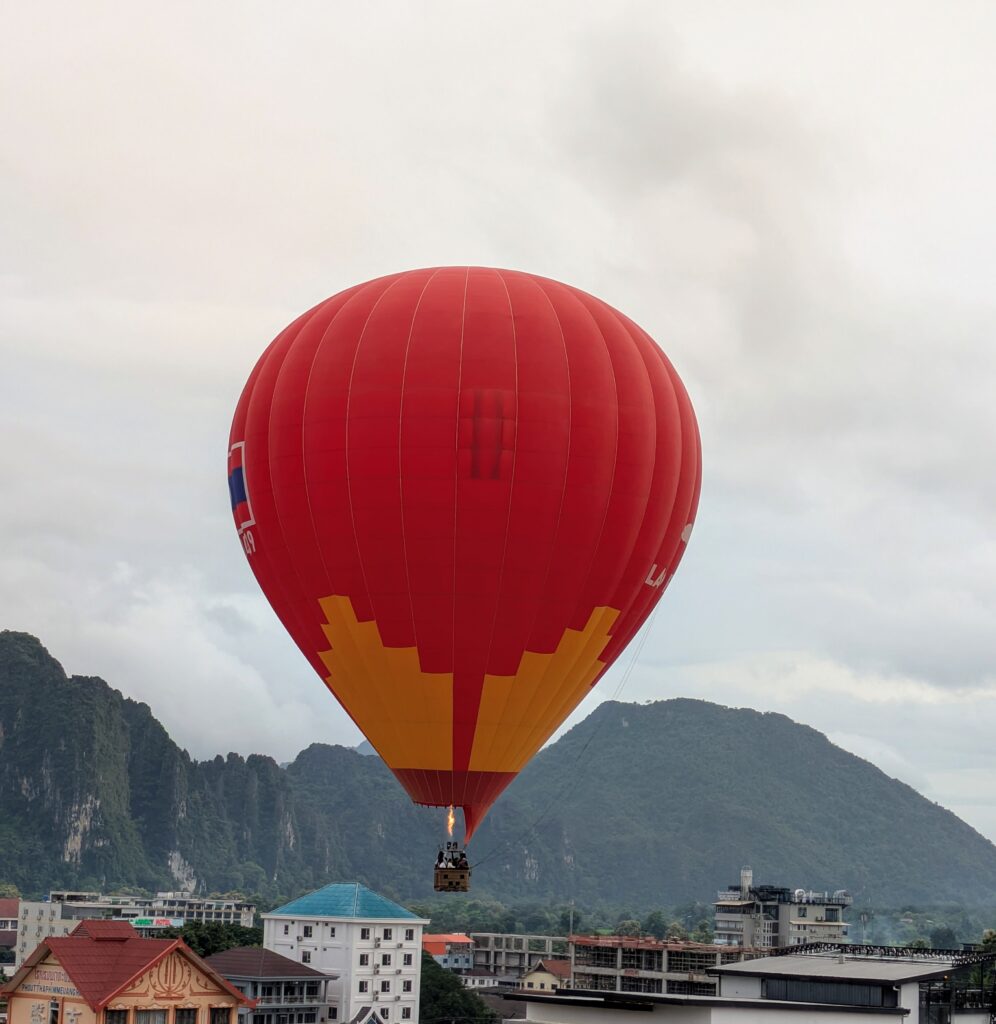 We unloaded and then set to explore our hotel and some of the town. We found a place for “lunner,” having a Hamburger (which was not as good as I was hoping) with French fries; Green Curry with Chicken; and a Papaya Salad (not so good either). The curry dish was the “winner, winner, chicken dinner!” Anyway, we strolled around a bit more, and found a few things we needed. There are a bunch more tourists in this village. It is the “Adventure Place” of Laos.