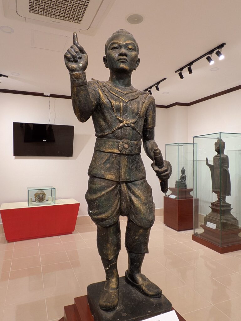 Anyway, on this floor we saw rooms displaying the time of the “Lanxang Kingdom” and more on the “Ethnic groups in Laos.” There was a life size statue of one of the Kings of Lanxang, as well as Buddha statuary; another intricately carved wood piece from the 1800’s; drawings/paintings; musical instruments; and the custom dress of various ethnic peoples… to name a few things that stuck out.